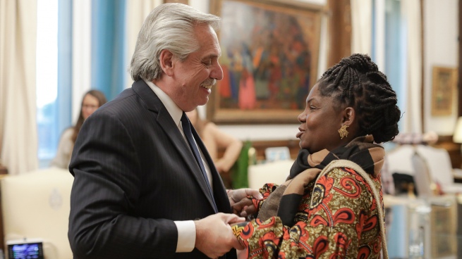 El viernes pasado Fernández recibió a la vicepresidenta electa de Colombia en su despacho presidencial de Casa Rosada, donde dialogaron sobre los desafíos de la región en materia ambiental y derechos de las personas afrodescendientes, según se informó oficialmente luego de ese encuentro.